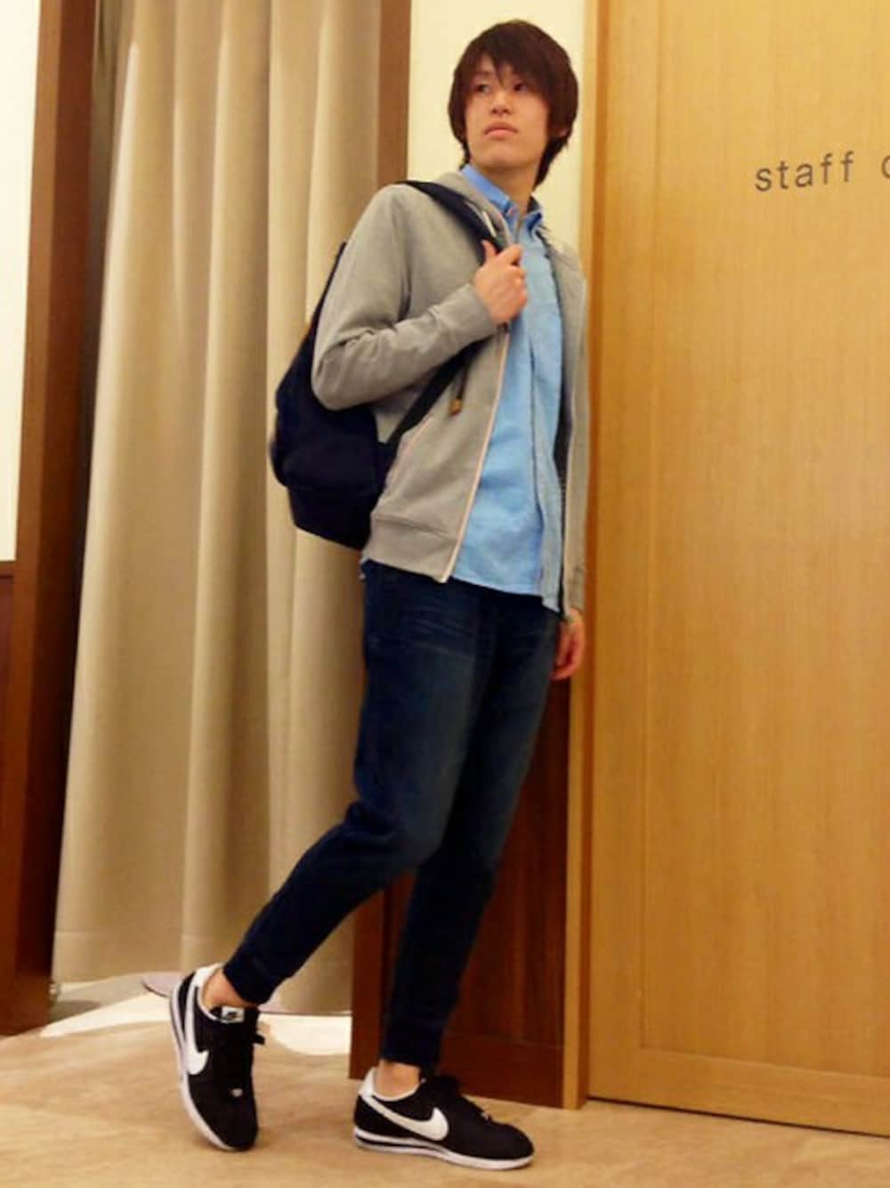 定番人気のパーカーでシンプルにスタイリング。 裏地のボーダーがアクセントになるから、程よい遊び心を演出してくれます。 インナーは季節感あるリネン混のシャツで春らしく仕上げました。