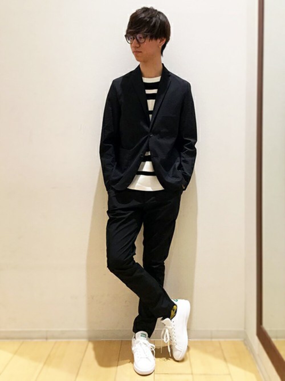 これからの季節におすすめ!サッカー生地のジャケットとパンツのセットアップで大人コーディネートに❗️ インナーにはデザイン性の高いボーダーでこなれ感が出るようにチョイス。 さらに、モノトーンで大人の印象を高めてみるのもおすすめです。