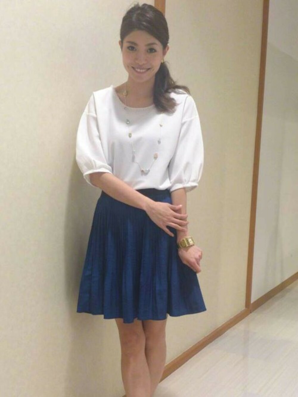 ホワイト×鮮やかなブルーの合わせは初夏を想わせるコーディネート。 女子力の高いビジュー使いのトップスを、プリーツスカートがさらに際立たせます。 小物使いはシンプルに、アイテムの持つ素材感を最大に活かしました。