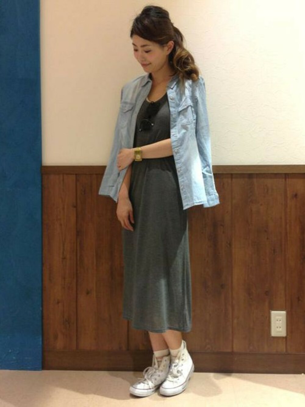 暑い日におすすめな、ノースリーブのマキシワンピース。 テンセル素材で肌触りが抜群の一枚です。 日中暑い時はデニムシャツを腰や肩に巻いて、肌寒くなったり冷房が効いた室内などは肩からかるく羽織って気温調節もばっちりです♪