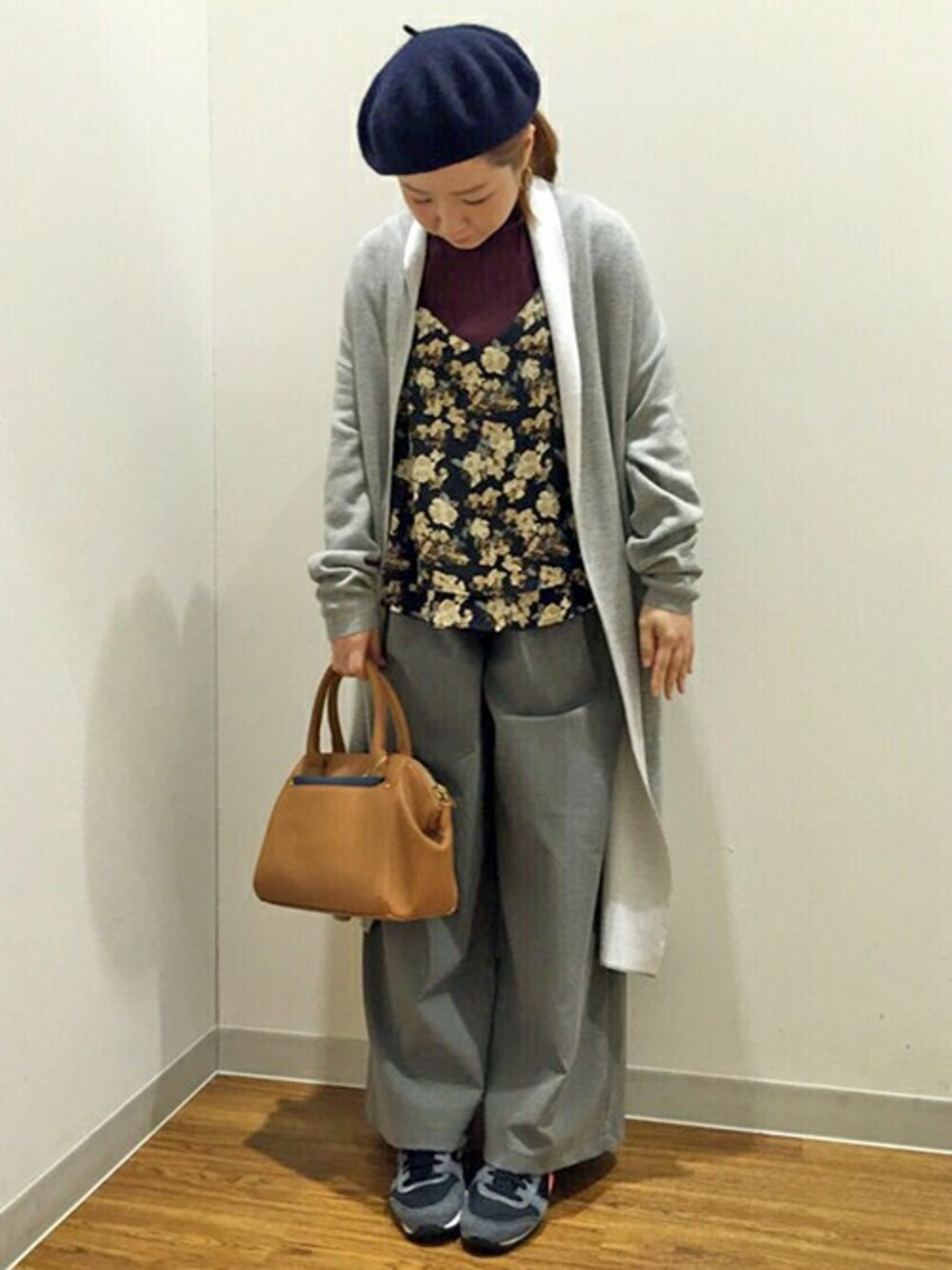 今季も注目のコーディガンタイプのニットアウター。 表と裏でカラーの異なるダブルフェイスの生地は、どちらも表のような見え方をするのがポイントで、内側がちらりと覗くバイカラーが印象的です。 レトロな花柄のキャミソールとワイドなシルエットのガウチョパンツで大人可愛くリッチに仕上げてみました♪