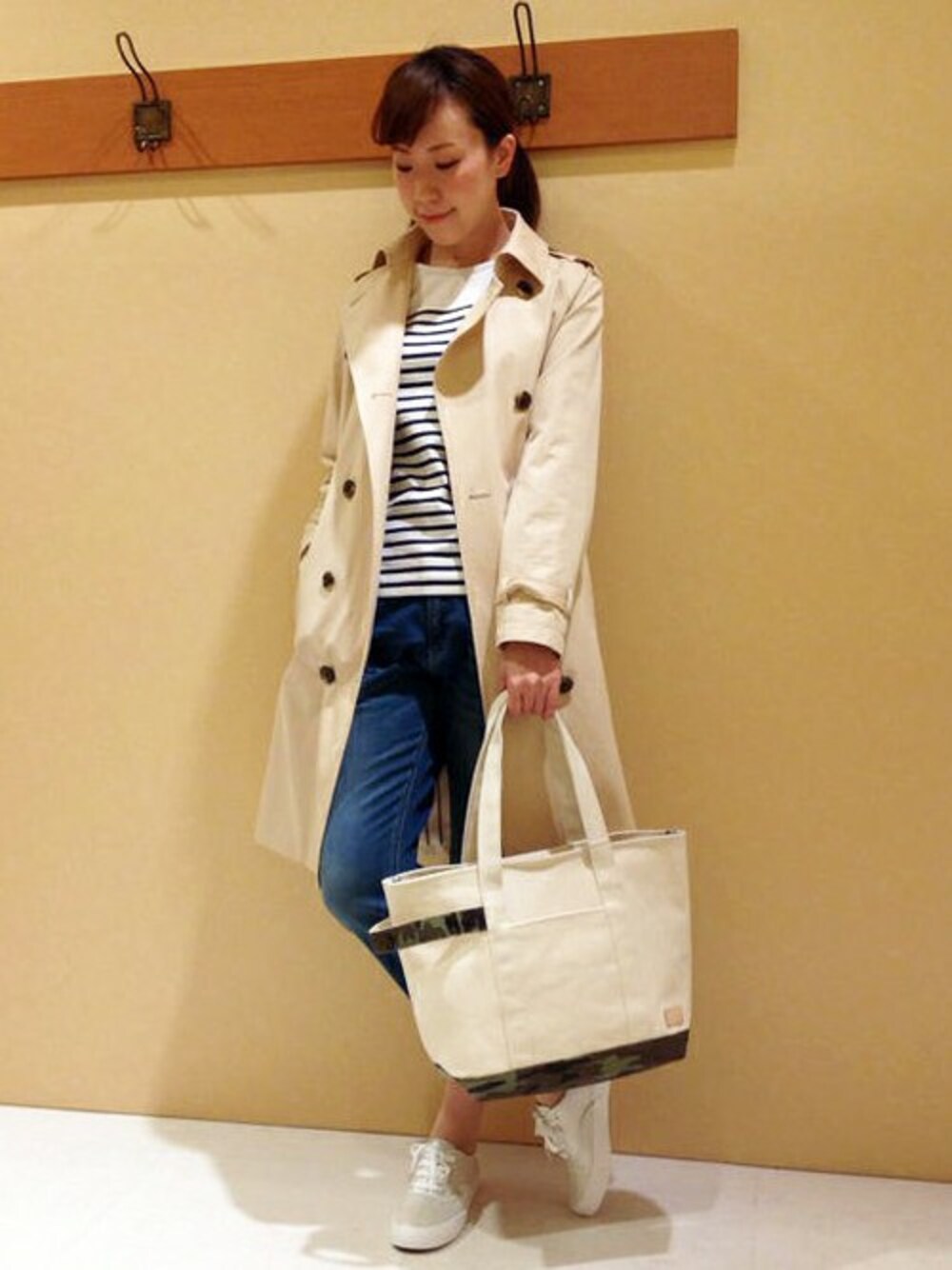 ボーダーT×デニムのマリンカジュアルスタイルを、トレンチコートで今年らしくアップデート。 ON/OFFに活躍するトレンチは今季もマストアイテムです。 キャンバスのトートBAGもこれからのスタイリングに最適な小物の1つ。