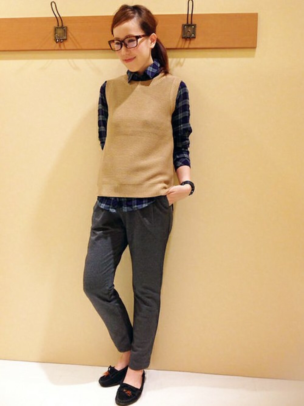 ベージュがポイントのマニッシュスタイルです。 ダークカラーにベージュ差すことで、季節感のあるシックな印象にしました。 クラッチバッグやショルダーを合わせればより大人な雰囲気に。