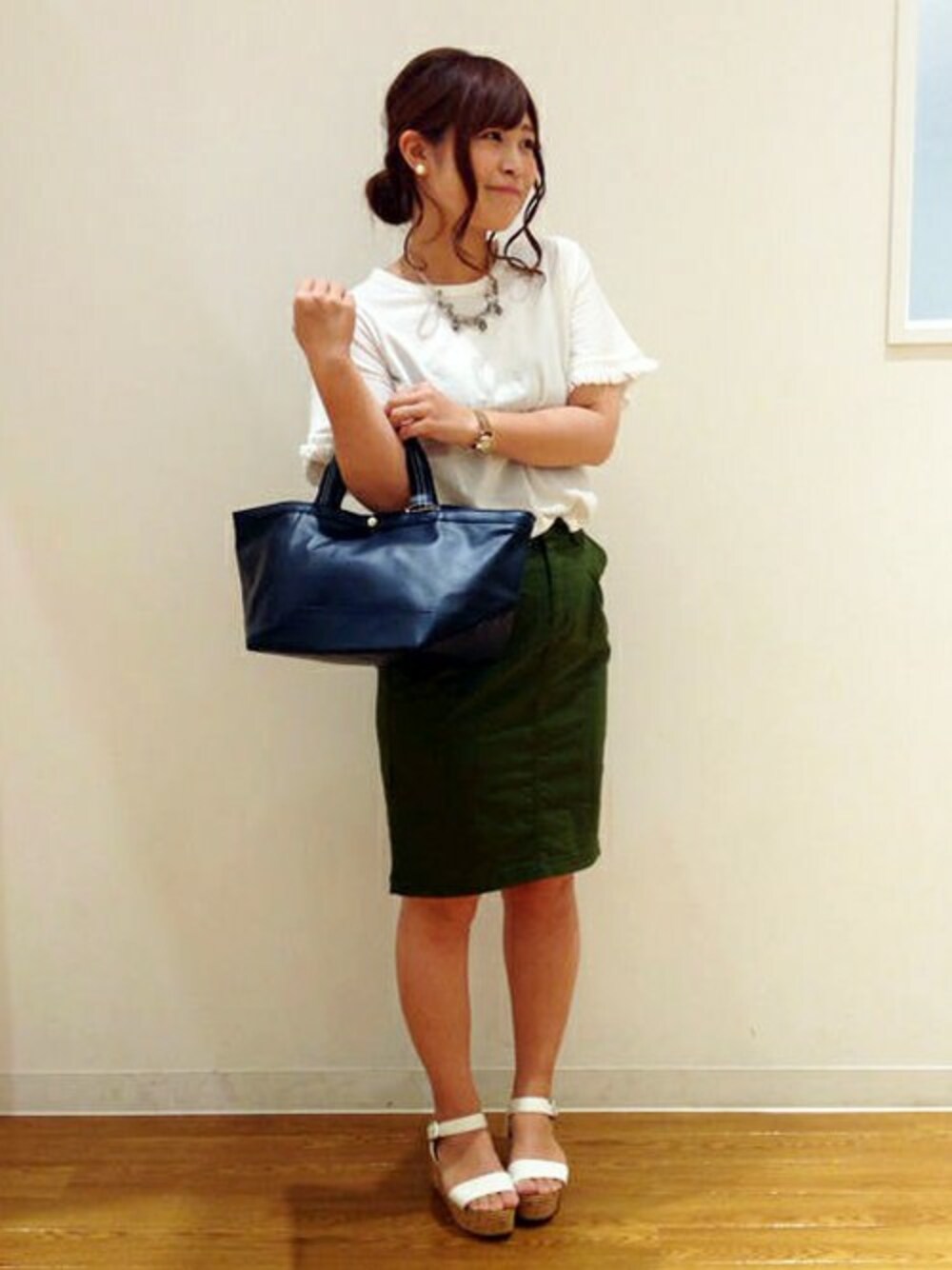トップスのゆる感がポイントの、大人カジュアルです。 対照的なタイトなスカートと合わせて、きちんと感ある印象に。 サンダルでヌケ感を加えたから、街歩きにおすすめです。