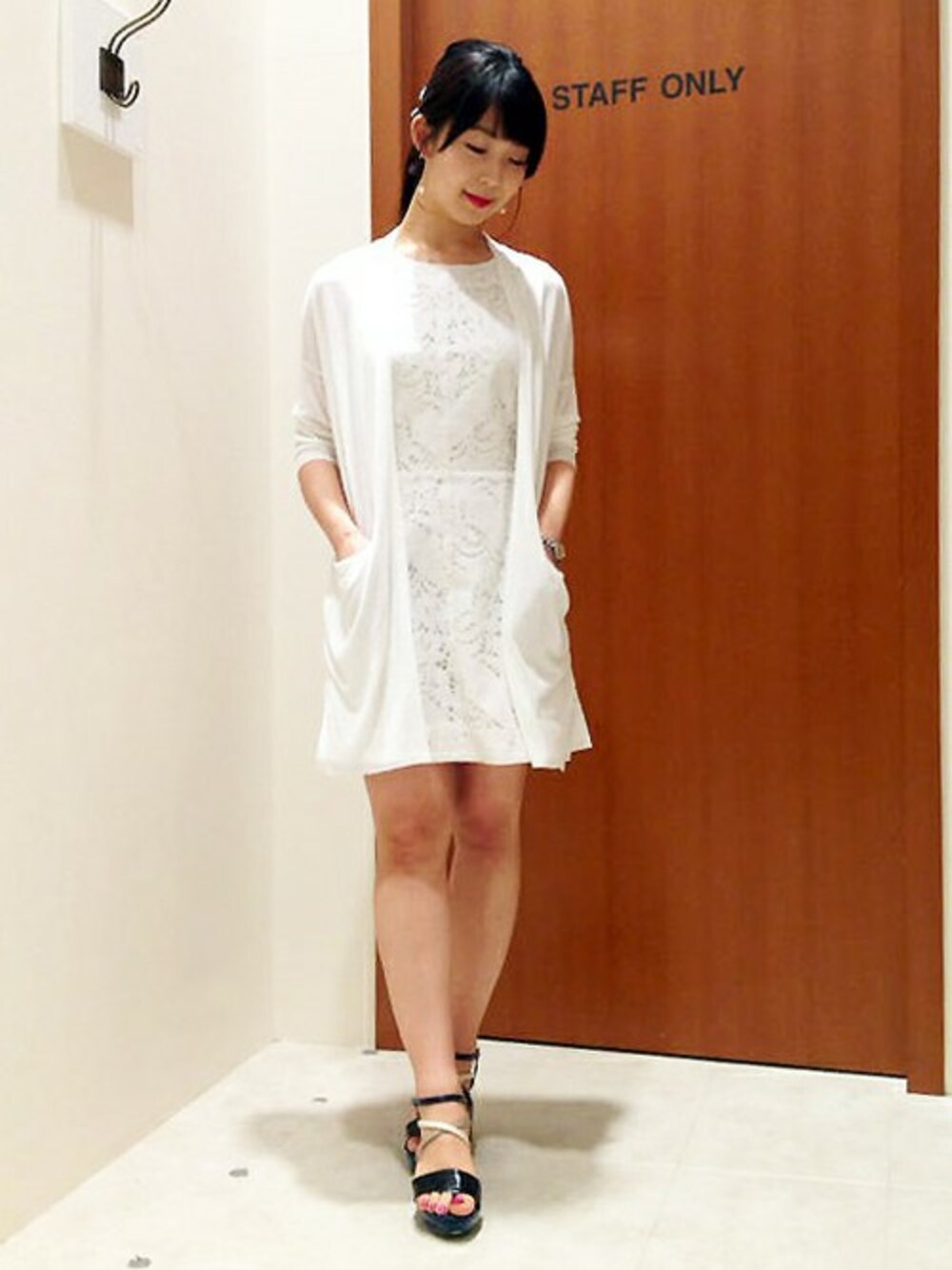 今年大注目のロングカーディガンを使ったスタイリングです。 ワンピースと色を合わせて、ホワイトxホワイトで上品な印象にしました。 きちんと感あるものと合わせるのもいいですが、カジュアルなスタイルに加えてMIXコーデもおすすめ。