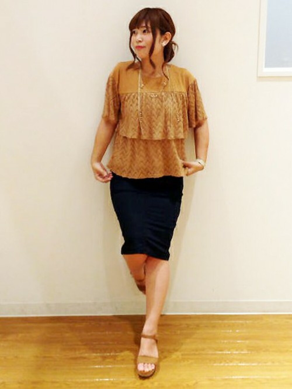 1枚でサマになるプルオーバーの存在感がポイントです。 タイトなスカートで甘辛MIXに。 秋色を取り入れ、今から長く着られるコーディネートを意識しました。
