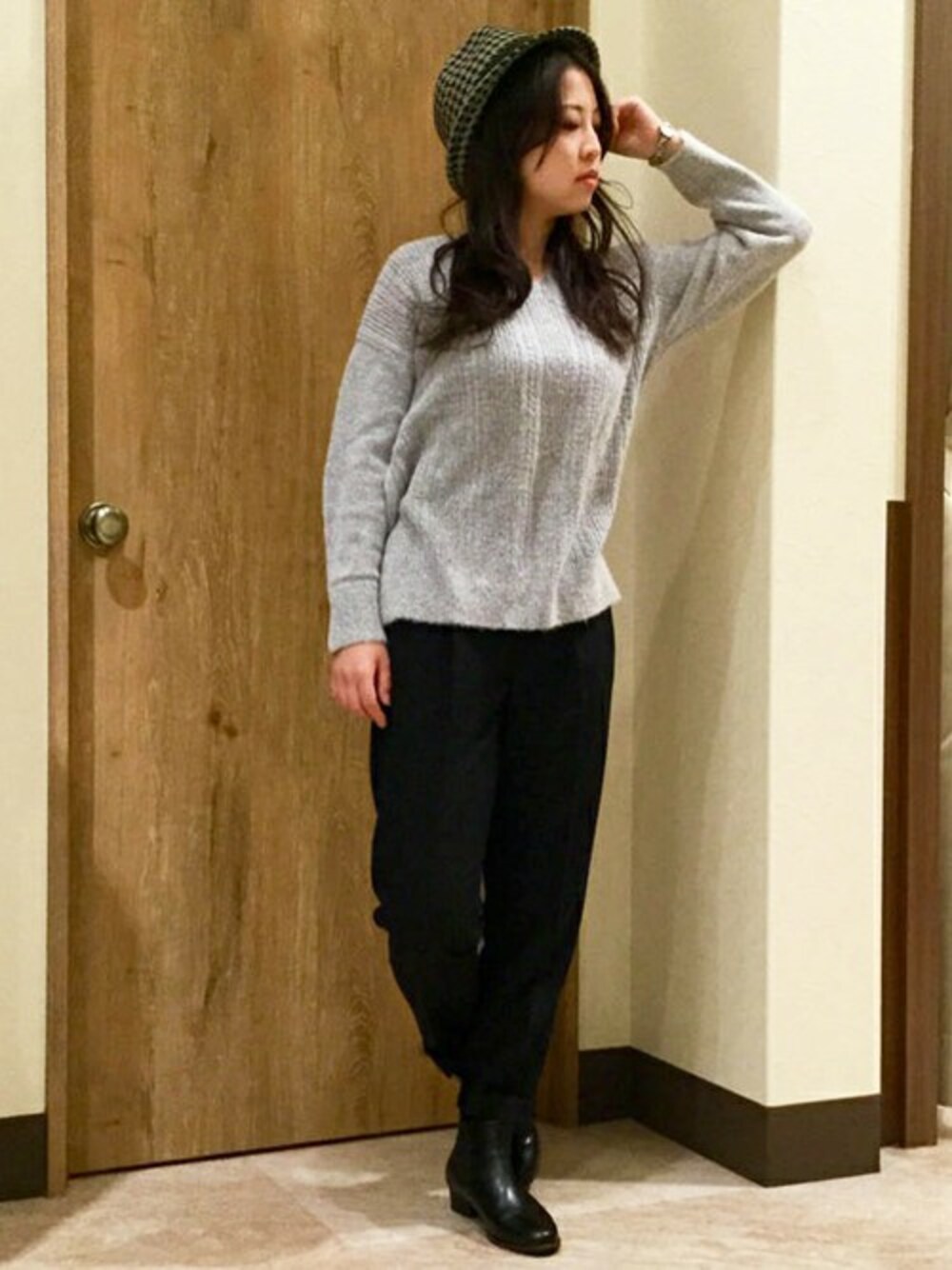 人気のケーブルニットで春まで着られる大人カジュアルスタイルです。 モノトーンのようにブラックのアイテムと組み合わせたのがポイント。 ゆったりシルエットのパンツでストレスフリーなのも嬉しいコーディネートです。