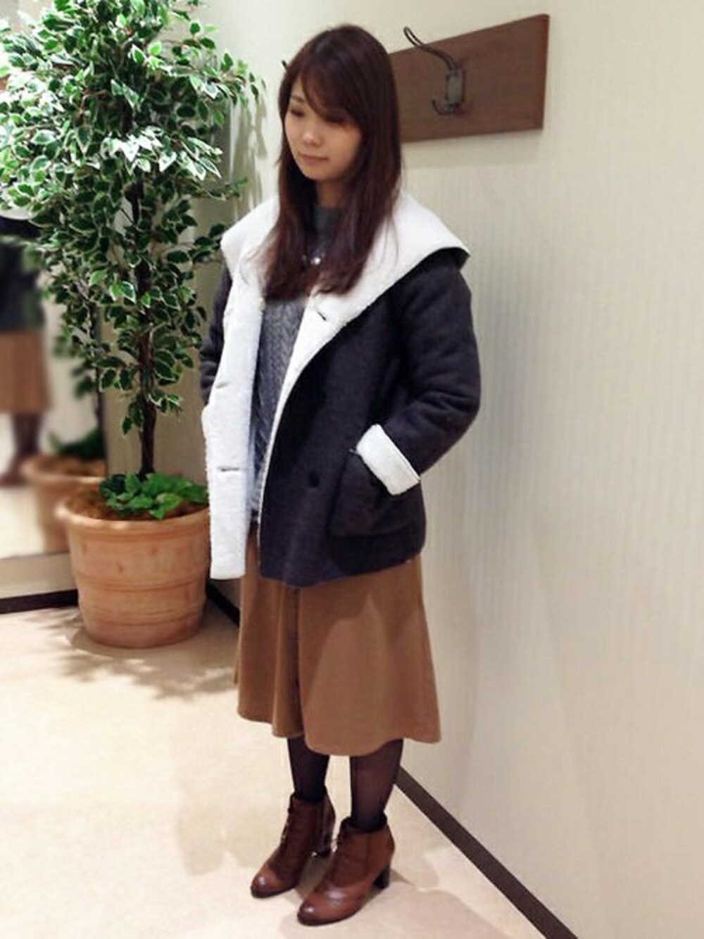 ikka HEAD OFFICE Women's(ikka HEAD OFFICE)のピーコート「ニットボンディングハーフブルゾン」を使ったコーディネート