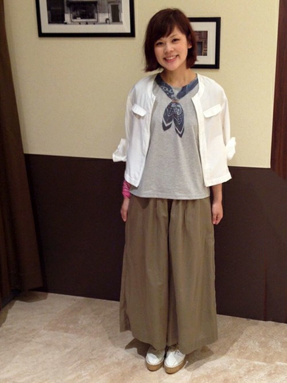 今注目のバンダナがプリントされたTシャツなら、一枚できまります。 アースカラーのスカーチョと合わせて大人カジュアルに。 デイリーなお出かけにピッタリです。