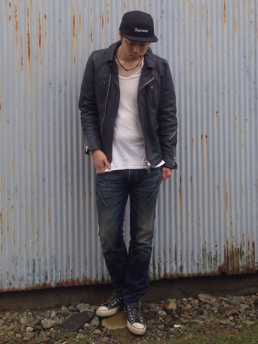 ライダース! ダークネイビー?グレー?な色味の茶芯レザーを使用したライダースに、履き古したレザーコンバースで雰囲気狙ってみました。インナーはシンプルにエヌハリ定番で。 最近いいねやコメントを沢山頂けるようになり、皆様には感謝しています。今後もよろしくお願いします^ ^