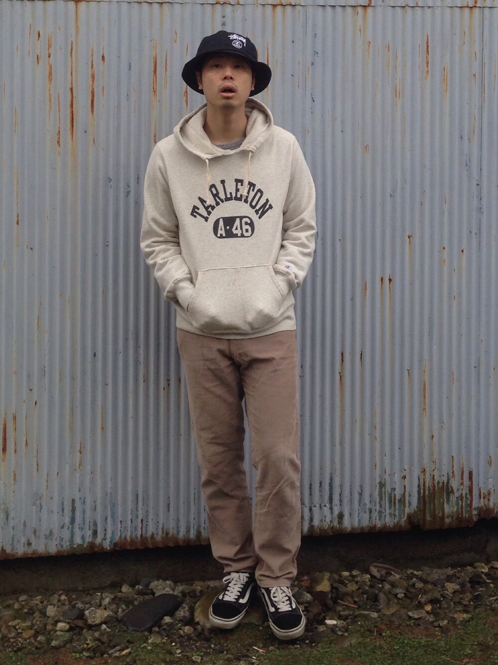 地元ショップがコラボした、チャンピオンの後付けフードスウェットパーカーに、バケハにコーデュロイパンツで秋コーデな感じに。 これにて一旦ネタ切れです。笑