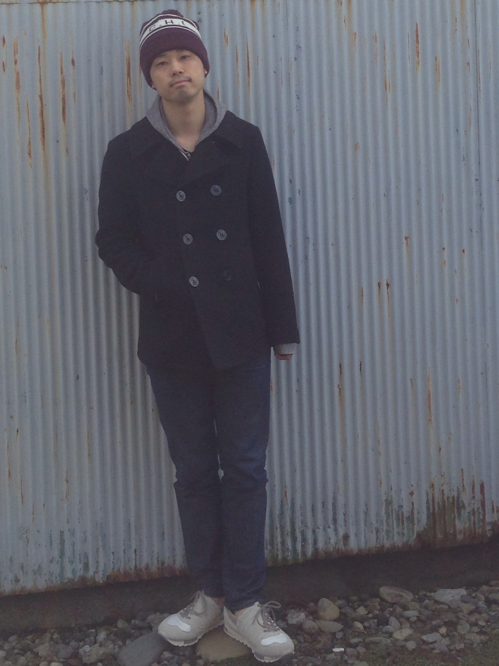 アウター活躍の季節! Pコート着てみました^^ボンボン付きニットキャップとパーカーで、スクールぽくなったかな?