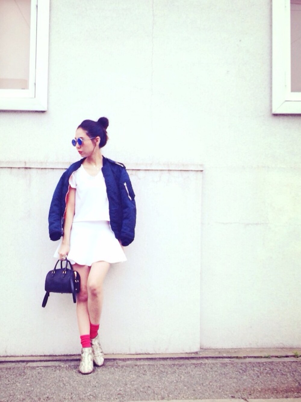 Navy×white×Red 最近、アメアパの赤のソックスを大人買い。笑 一気に3足。毎日赤ソックス。はき心地も抜群。