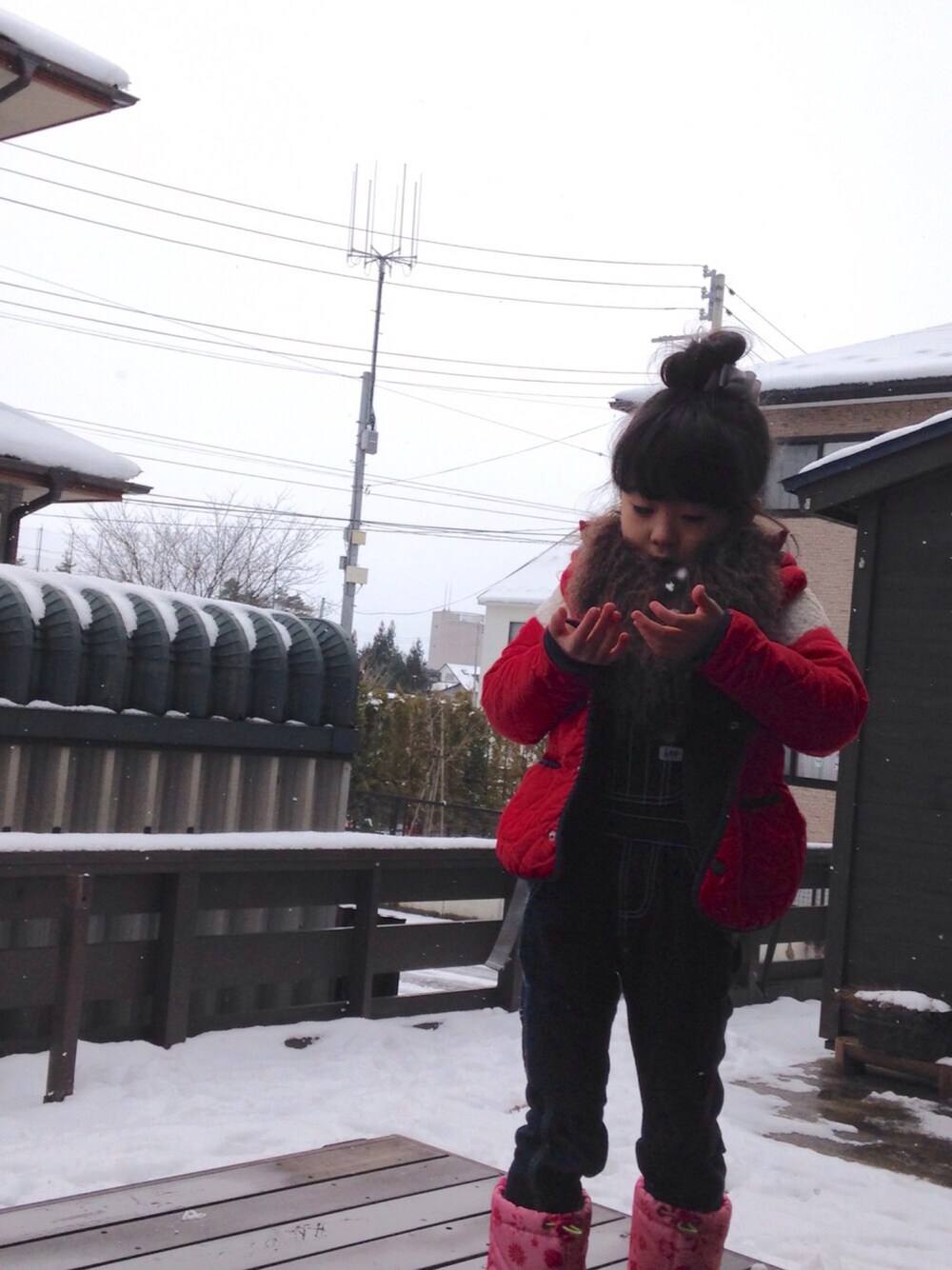 ゆきがもさもさー! うれしいのはこどもたちだけ…