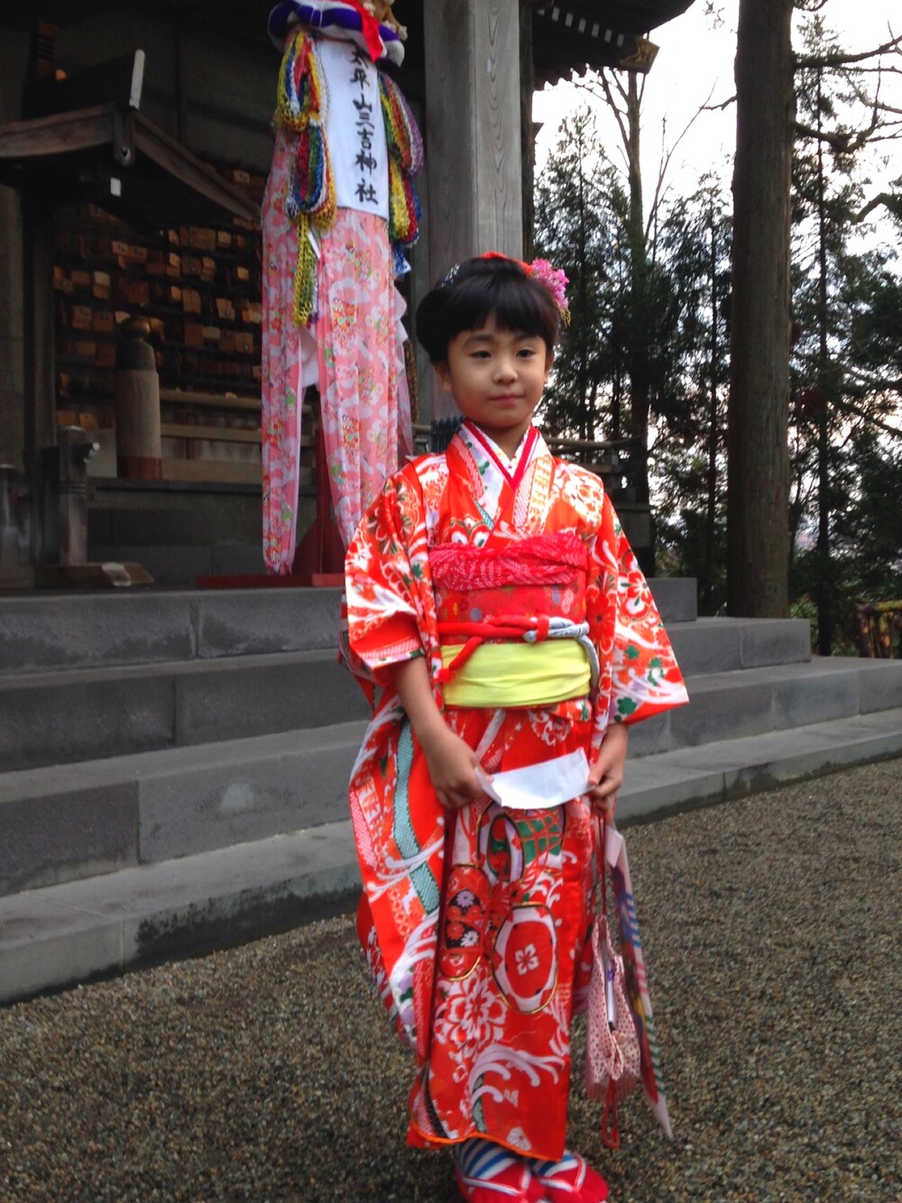 むすめも! 念願叶って日本髪♡ 25年前、私もこの着物に日本髪でお参りしました。 感無量!