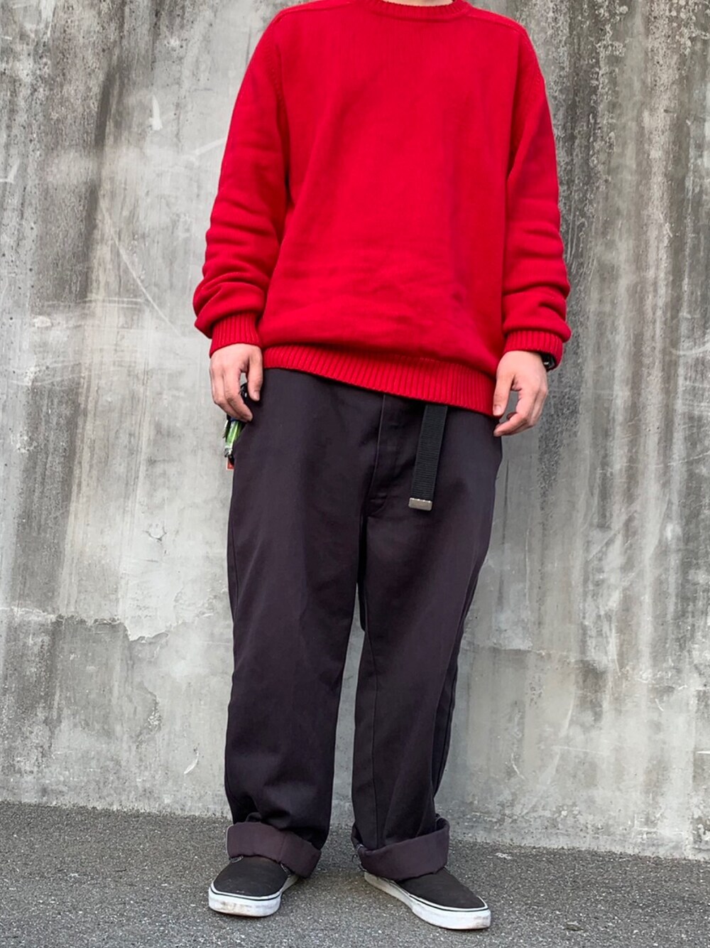 90s ランズエンド コットンニット old ディッキーズ 874 意外と合わせやすい赤コーデ