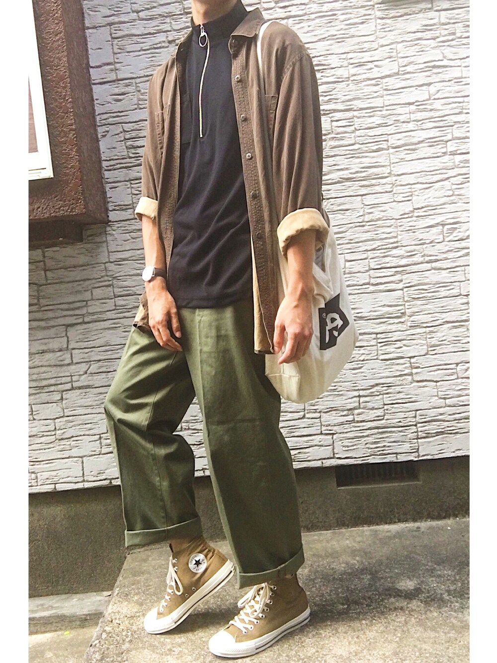 【今日のポイント】 秋色を取り入れたカジュアルコーデ 皆さんこんにちは😃いつも見に来てくださってありがとうございます✨ 今回はまだ日差しが暑い中思いっきり秋コーデをしてみました🙃 ポイントはトップス、ウォッチ、シューズを茶で統一してその他を茶に合う配色でまとめてみたところです‼️ 首回りもモックネックになっていて首のレイヤードを図れてチョビコしてます😍 一気に秋感出ましたね〜🎑 インナーがトレンドのハーフジップでしかもモックネックなシャツこれはマジでオススメです!今後いろんなコーデで活躍しそうです🙃 今日のコーデも良かったらぜひぜひいいね、セーブよろしくお願いいたします🤲 ばいばい👋