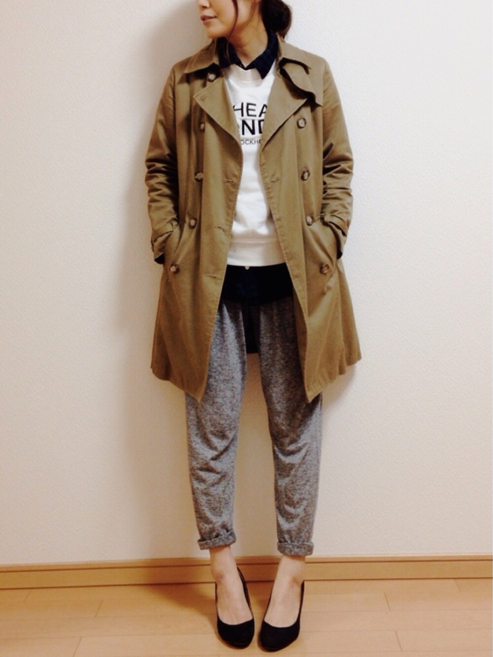 シャツは旦那さんの。 このトレンチはもう10年もの。 今年は新調したいなー´◡`