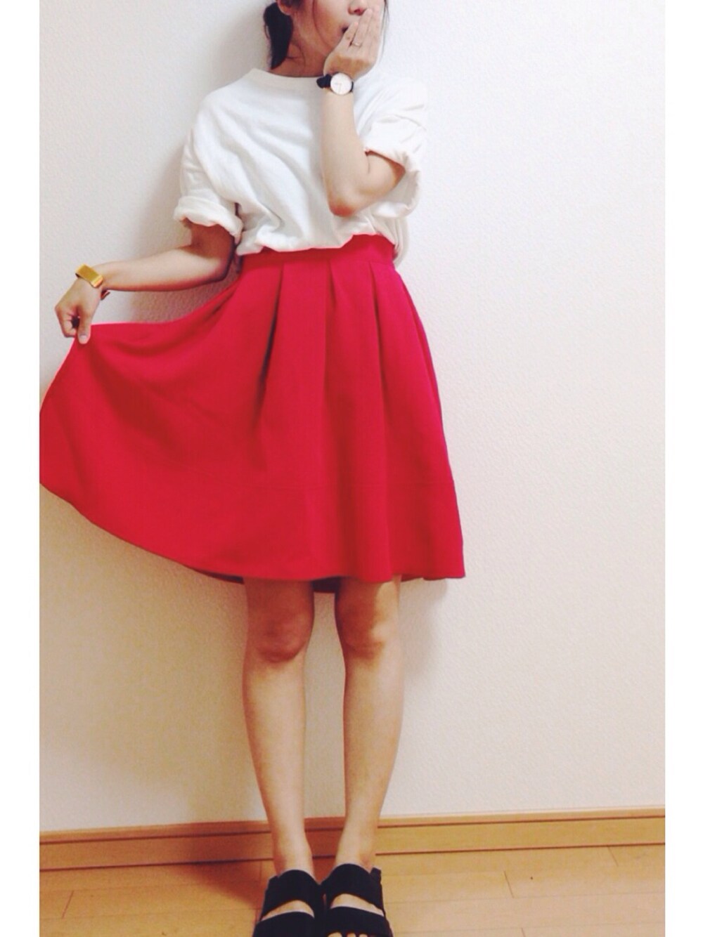 久しぶりに赤いスカートを履く。