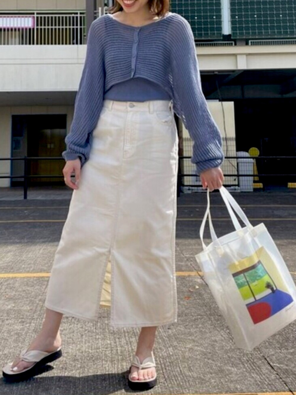 トップスはインナーとカーディガンがセットになっていて カーディガンがショート丈なので 腰の位置を高く見せてくれて脚長効果になります💙 インナー、カーディガンと 別々で他のアイテムと合わせて着ても可愛いです♡!! スカートはデニム生地ですが、 前にスリットが入っているので カジュアルになりすぎないように見せてくれますよ♩