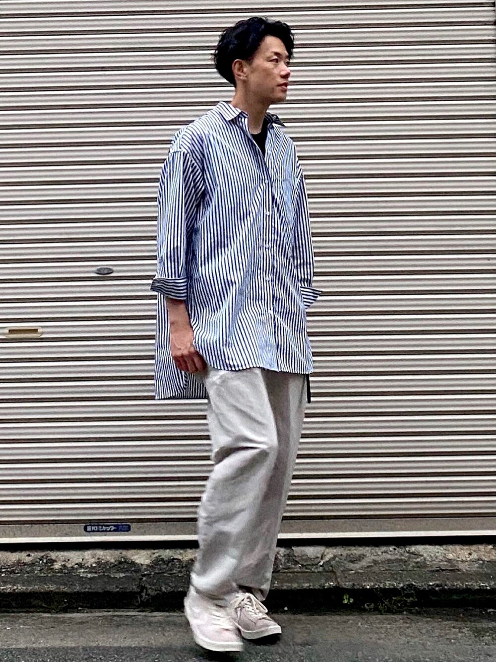 ikoan811のシャツ/ブラウス「エクストラファインコットンオーバーサイズロングシャツ(ストライプ・長袖)」を使ったコーディネート