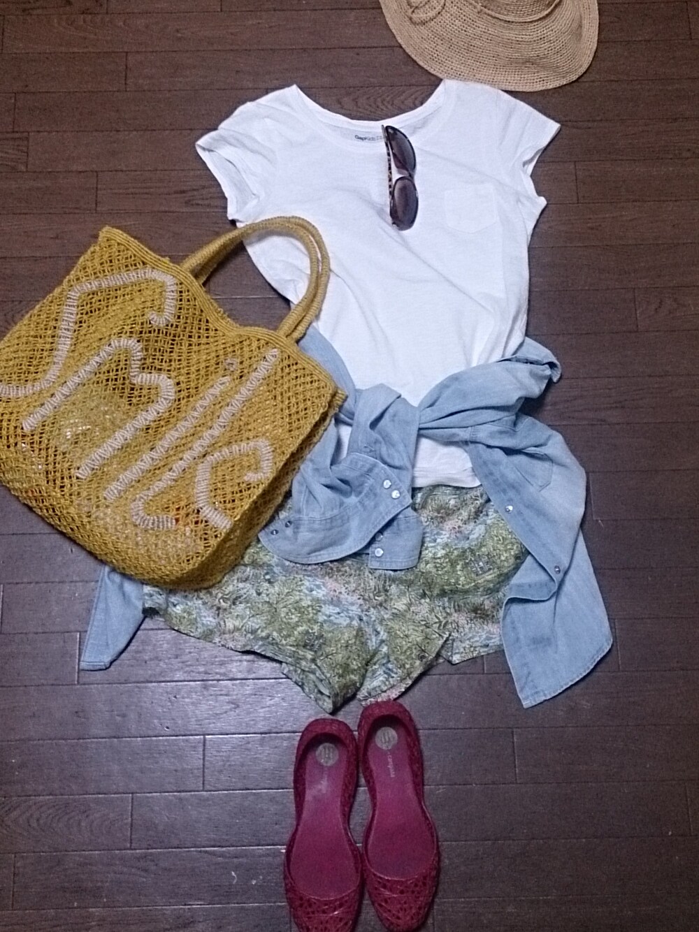 今日、着ていた物を脱いで写真に撮りました(笑) 小学校のプール監視ボランティアに参加したので動きやすいショートパンツに帽子、サングラスで日焼け対策。 ショートパンツの下にはレギンス履きましたよ~w ポケTはGAP kidsです。160がジャストサイズでした♪ 皆さんsale行きましたか~? ここ1週間、wearほったらかしで色々回っちゃいました。 靴、カットソー、スカートなんかをお得にゲットしましたのでまた、登場させますね。 後はきれいめにもカジュアルにも着れるワンピースが欲しいな~。