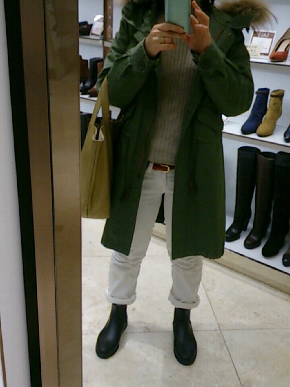東京は雪かも!?な日にタートルネックはぴったりだね☆ラバーブーツで足元も大丈夫!タートルは1○年近く着てるIENA。あまりラインが出過ぎないサイズ感が大人向けwベルトと眼鏡と靴下を赤にって暗くて分かんないし、タートル手が邪魔で分かんない!!Σ( ̄□ ̄;)