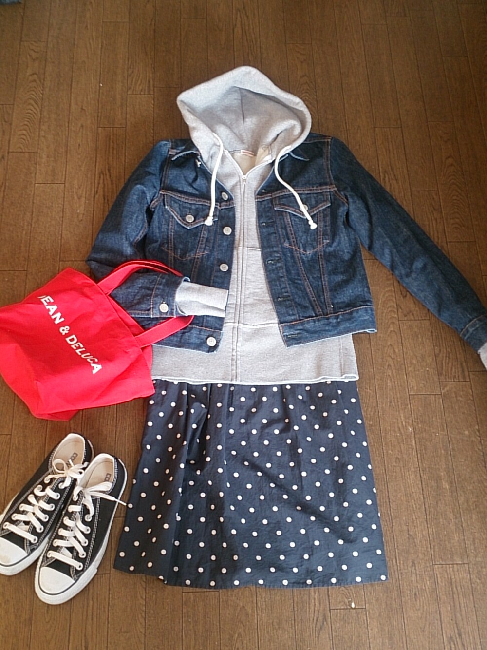 ドットワンピースをスカートっぽく。 グレーのパーカーは3○歳の誕生日に旦那さんが買ってくれたドレステリア。 タイトなシルエットで中には着込めないけど、裏起毛で凄く暖かいよ。 今週もまたまた雪が降るらしい・・・。 こんな格好いつ出来るんだか・・・(^_^;)