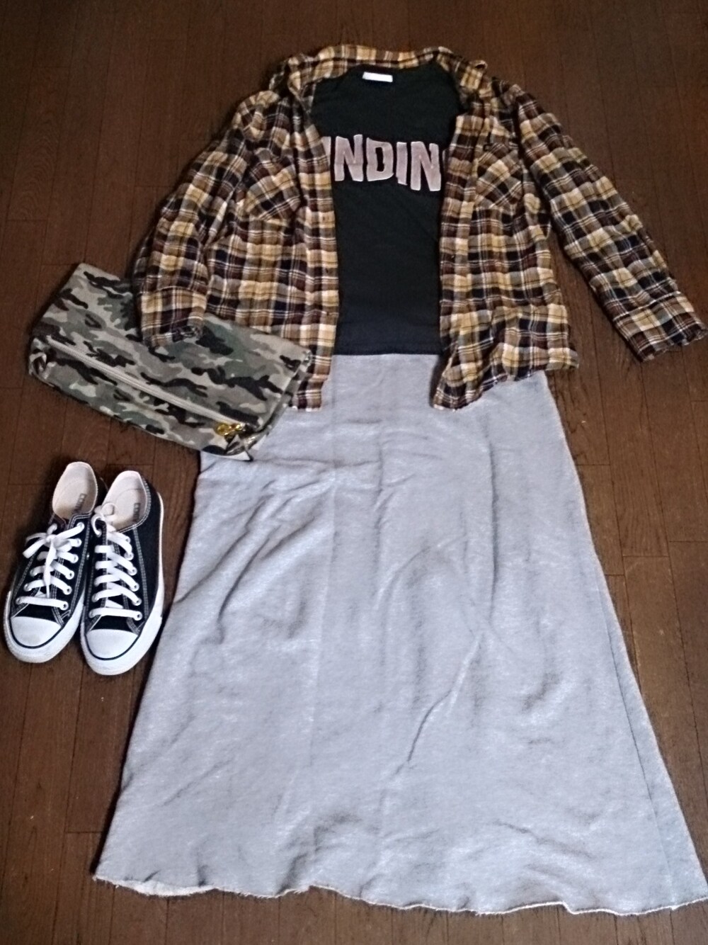 アメカジって・・・もう何でもアリのような気もしますが。 とりあえずチェックシャツで。 シャツは袖丈を10センチ近くお直ししました。 SHIPSは袖丈長めですよね。 このシャツは襟にワイヤーが入ってて襟の形が決まりやすいのがお気に入りで購入。 最初ショートパンツ合わせてみたんだけど、これは年齢的にヤバいな(笑)と思い、マキシにチェンジしますたw ショーパンバージョンタグに付けました。 背が低いとボトムは短い方がバランスいいんだけどね・・・(~_~;) カシェリエのクラッチはラメが入ったカモフラ柄が大人な感じです。