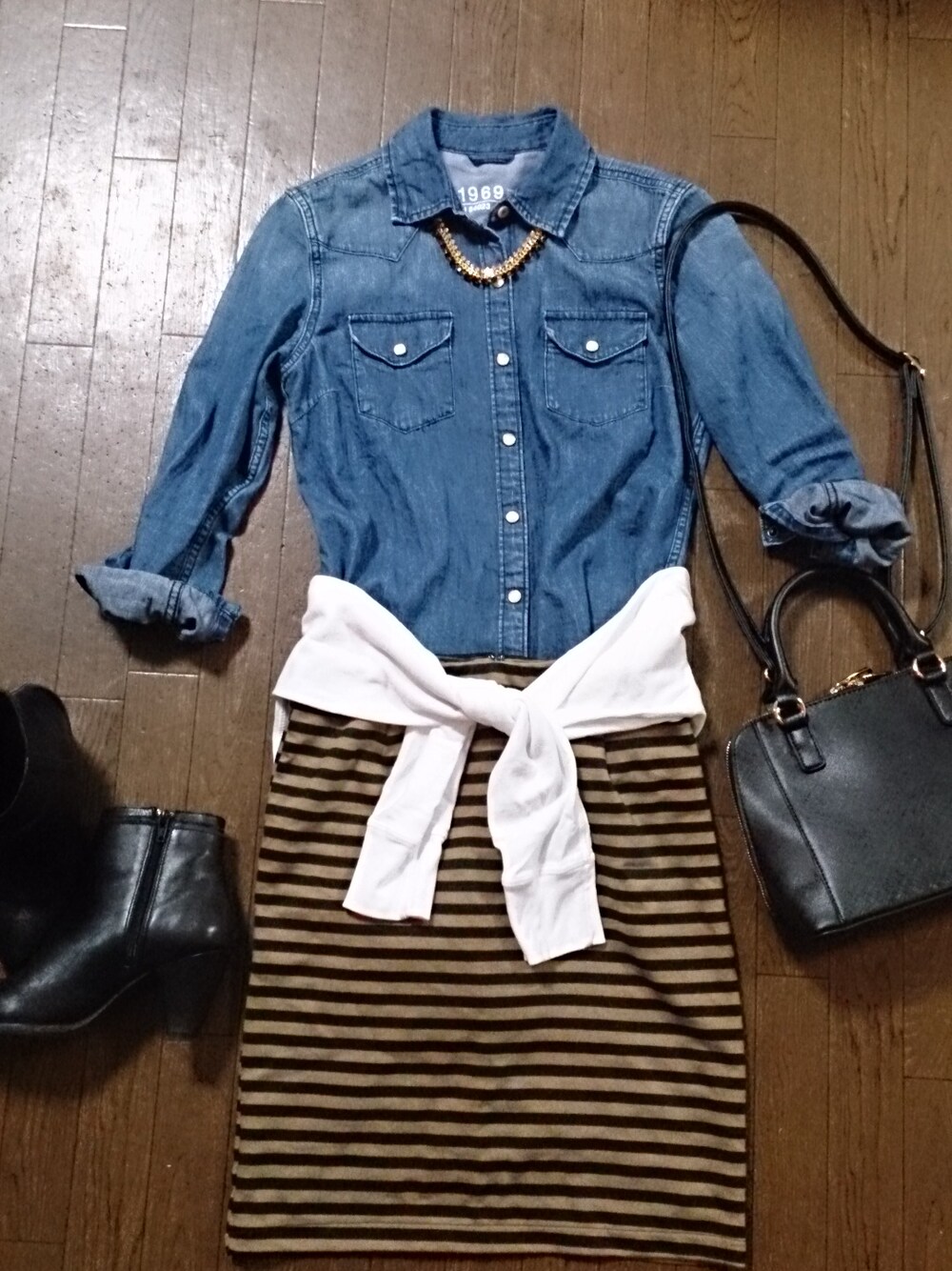 やっと春らしい気温になってきたね~(*^▽^)/★*☆♪ こんな感じでお出かけしまーす。 ナマ足はまだ寒いかな? デニムシャツはGAPで。 ボーダータイトスカートはストレッチが効いてて履きやす~い。 これ1つでレディっぽくなるし、お気に入ってます。