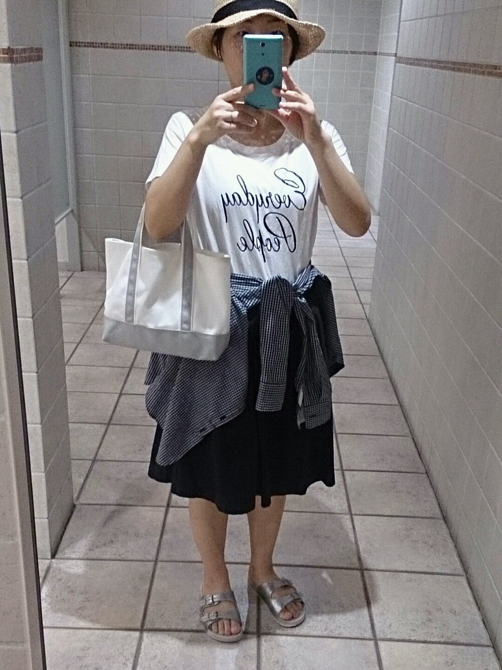 同じTシャツばかり着ていますw 今日は無印のネイビーのフレアスカートと。 コンフォートサンダル楽チンですね。 夏は白、紺、グレーの組み合わせばかりになっちゃうなあ。