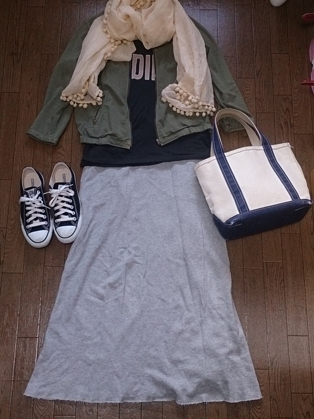 近所のイトーヨーカ堂で娘の上履きを買いに。 少し肌寒い日にはストールが体温調節に便利ですね。 おうちにいる事が多い時はスウェットマキシが動きやすくて楽チン♪