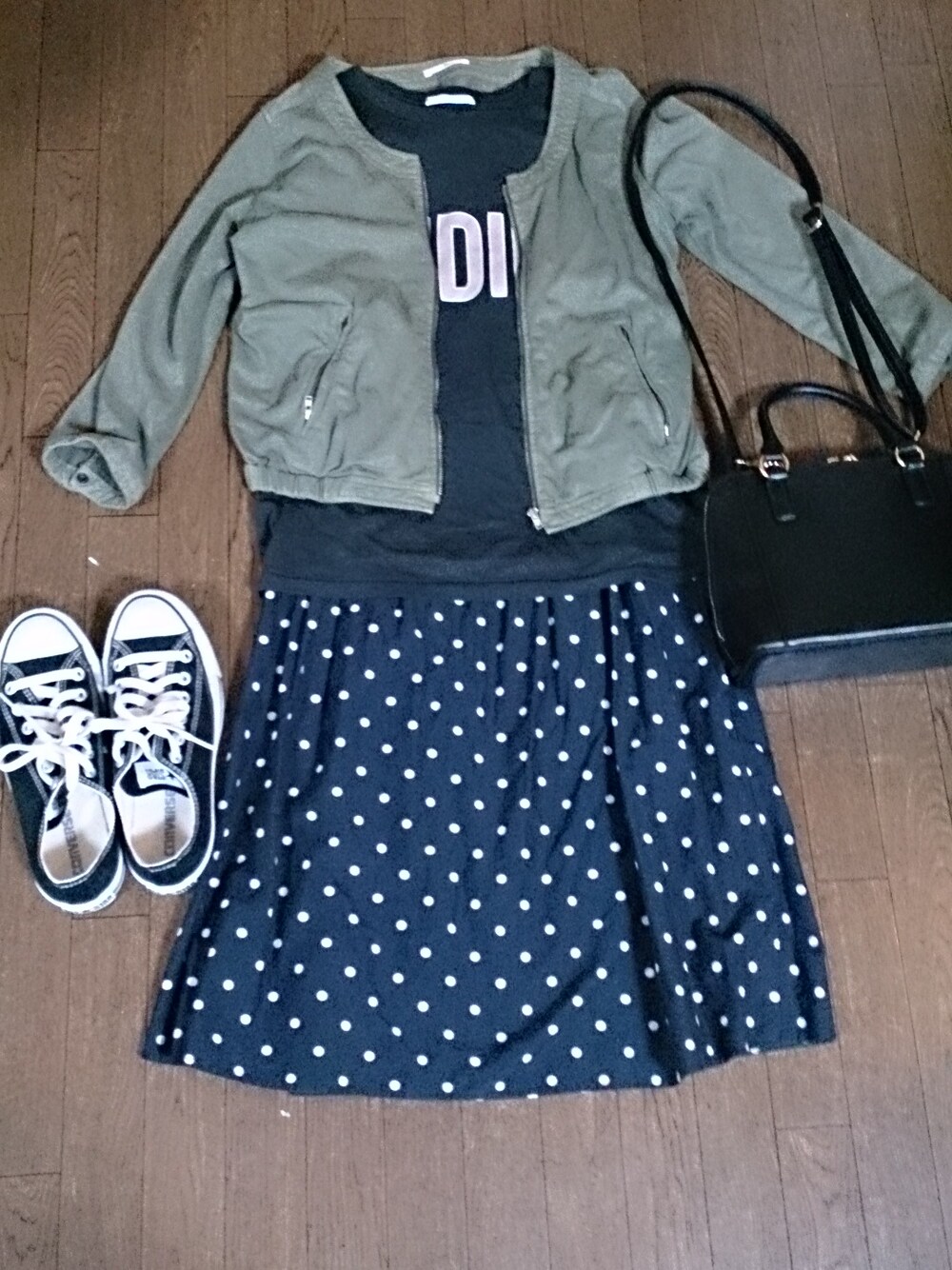 春なのに…黒多めw ポシェットって昭和感強めなアイテムですか? 斜めがけのちっさいヤツならOKかなw 実際はバイト行くだけだからエコバッグでいきましたが。 まだまだ少し肌寒かったので、ストールもしました。