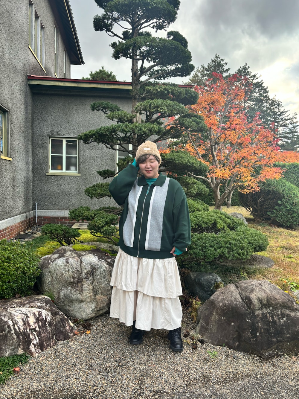 ぽっちゃりが着るニット帽を使ったコーデ Instagram @ikumi1622