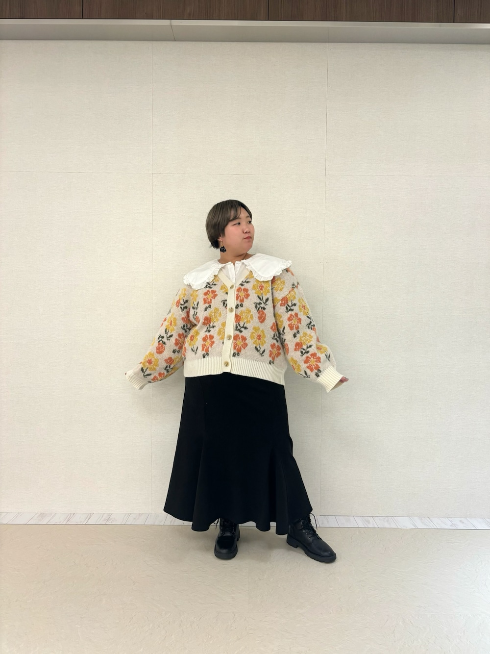 ぽっちゃりが着る花柄カーディガンコーデ Instagram @ikumi1622