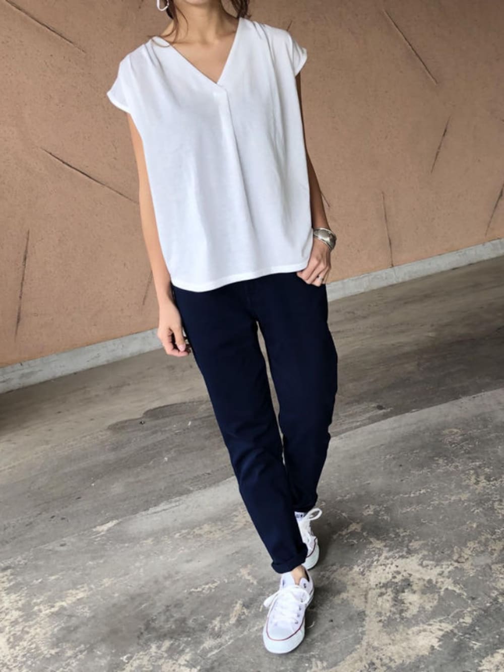 ikuのTシャツ/カットソー「着回し力抜群!シンプルタック入りフレンチスリーブトップス(5color)【クリックポスト対象商品】」を使ったコーディネート