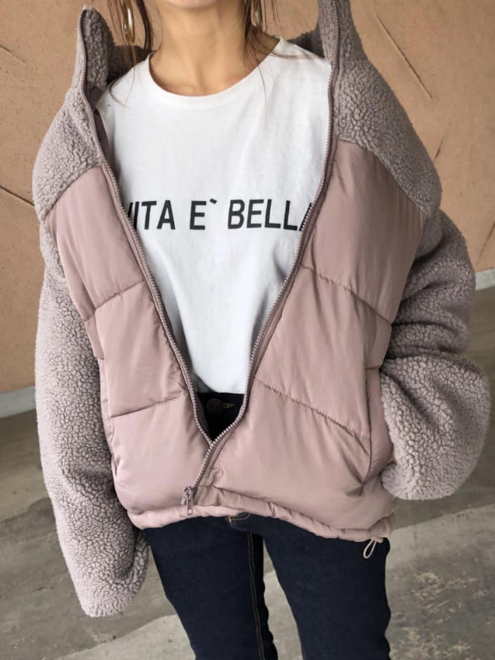 ikuのダウンジャケット/コート「大人カジュアル!ボア切替デザイン中綿ダウン(2color)」を使ったコーディネート