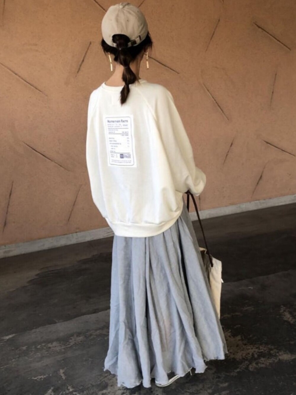 バックラベルが可愛い ビッグスウェット😊💕 スカート合わせでゆるコーデ❤️ ご覧頂きありがとうございます💕