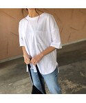 ikuのTシャツ/カットソー「定価2750円→550円!訳ありOUTLET!5分袖バックロング綿麻Tシャツ【クリックポスト対象商品】」を使ったコーディネート