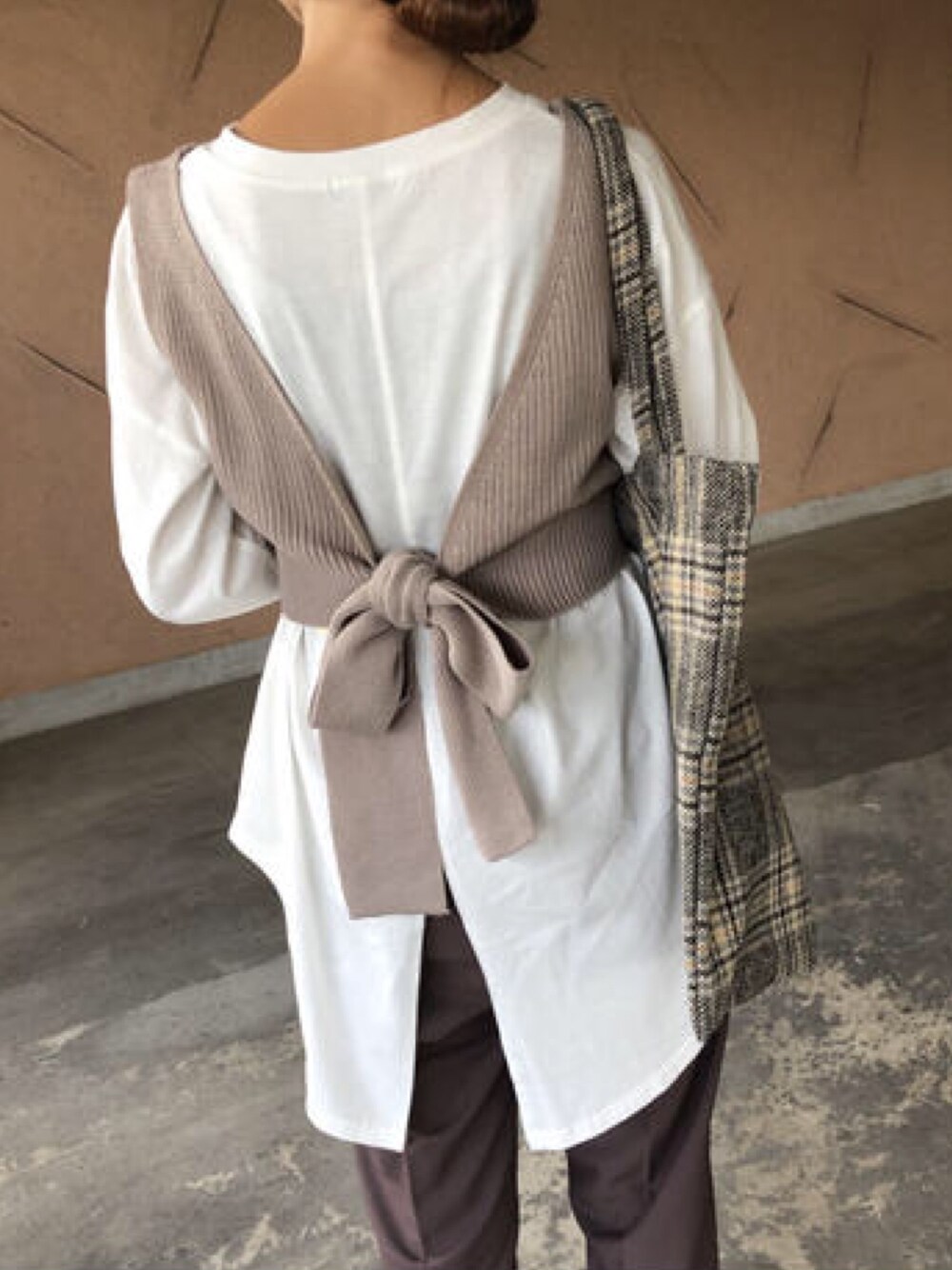 ikuのTシャツ/カットソー「大人可愛いバックリボン!ニットビスチェ ×バックスリットロンT SET(2color)【クリックポスト対象商品】」を使ったコーディネート
