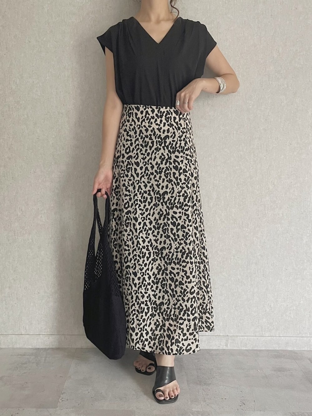 モノトーンコーデ レオパード柄がアクセント♪