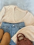 ECRIRE TOMOさんコラボのVネックニットトップス レイヤードスタイルが楽しめるデザインニット♡ バックロングで前は長すぎないため、ゆるパンツとも相性○ 後ろ部分はおしりまで隠れる長さ🥹 春まで着られるアイテムです🧡