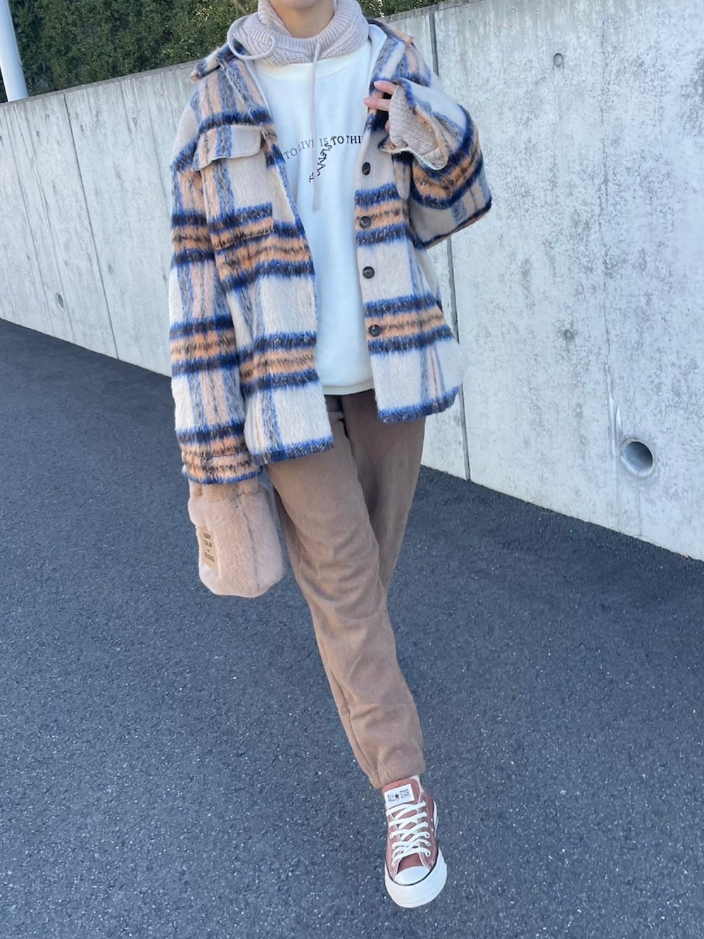 オーバーサイズのチェックシャツに、ゆるっとコーデュロイパンツで冬カジュアル🤍