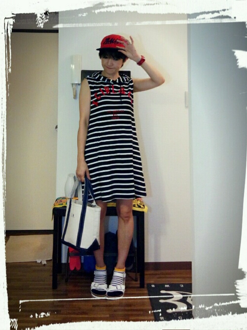 今日はとうとう禁断のワンピでコーデ🌀🌀 禁断というのは毎回違う組み合わせでコーデをアップするのに、ワンピースは一回アップしたらなかなか次使えないでしょ⁉ 私としては小物が違えば違うコーデとしてセーフ💨ということにしているけど… そして今日もまたトリコロール😅🌀 けど靴下の黄色いラインがポイントです😉❗