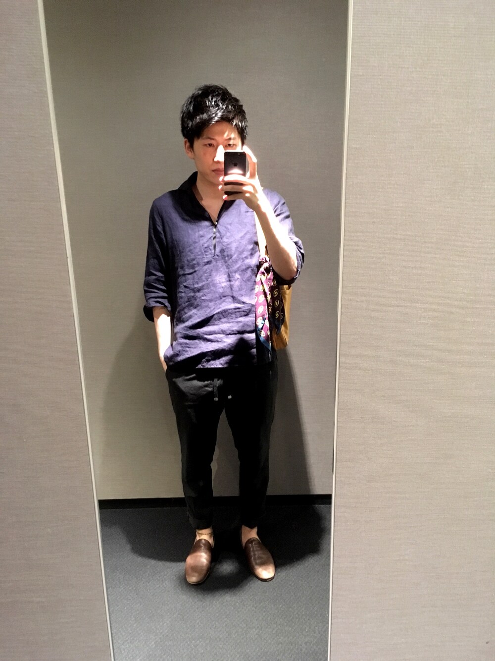 こんにちは、こんばんは。 どーもです。 夏がもうすぐ終わるということで 夏っぽい麻素材のカプリシャツ! 下はリラックスパンツ! 細身なのでスラックスっぽくも 見えたり、重宝してます。 なんて言うてますけども、 どうぞよろしくお願い致します★