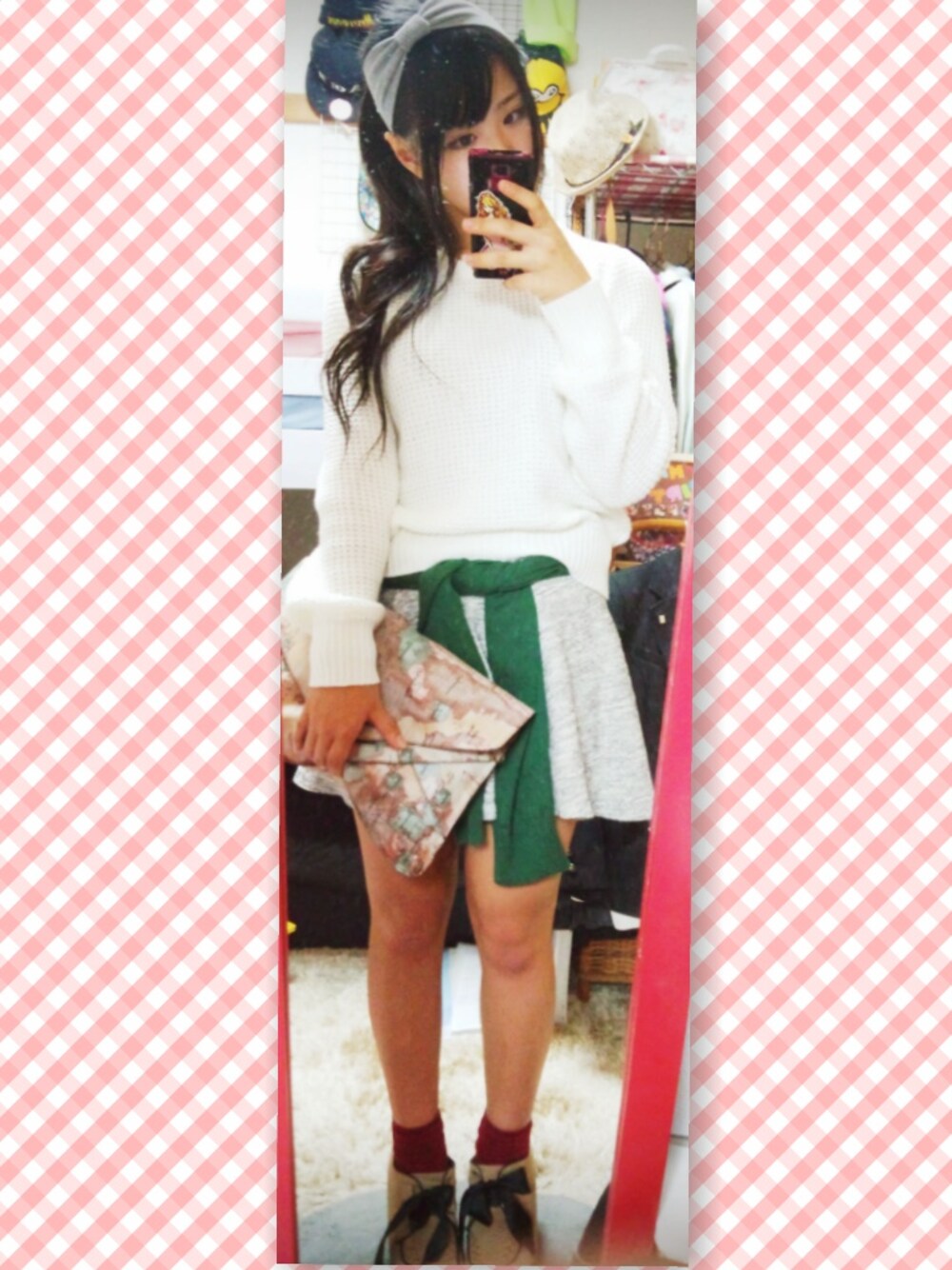 今日は白ニットで デートスタイルで(´-`).。oO(♡ 秋デートいいですね ほんのりあったかくて(´-`).。oO クラッチがお気に入りです