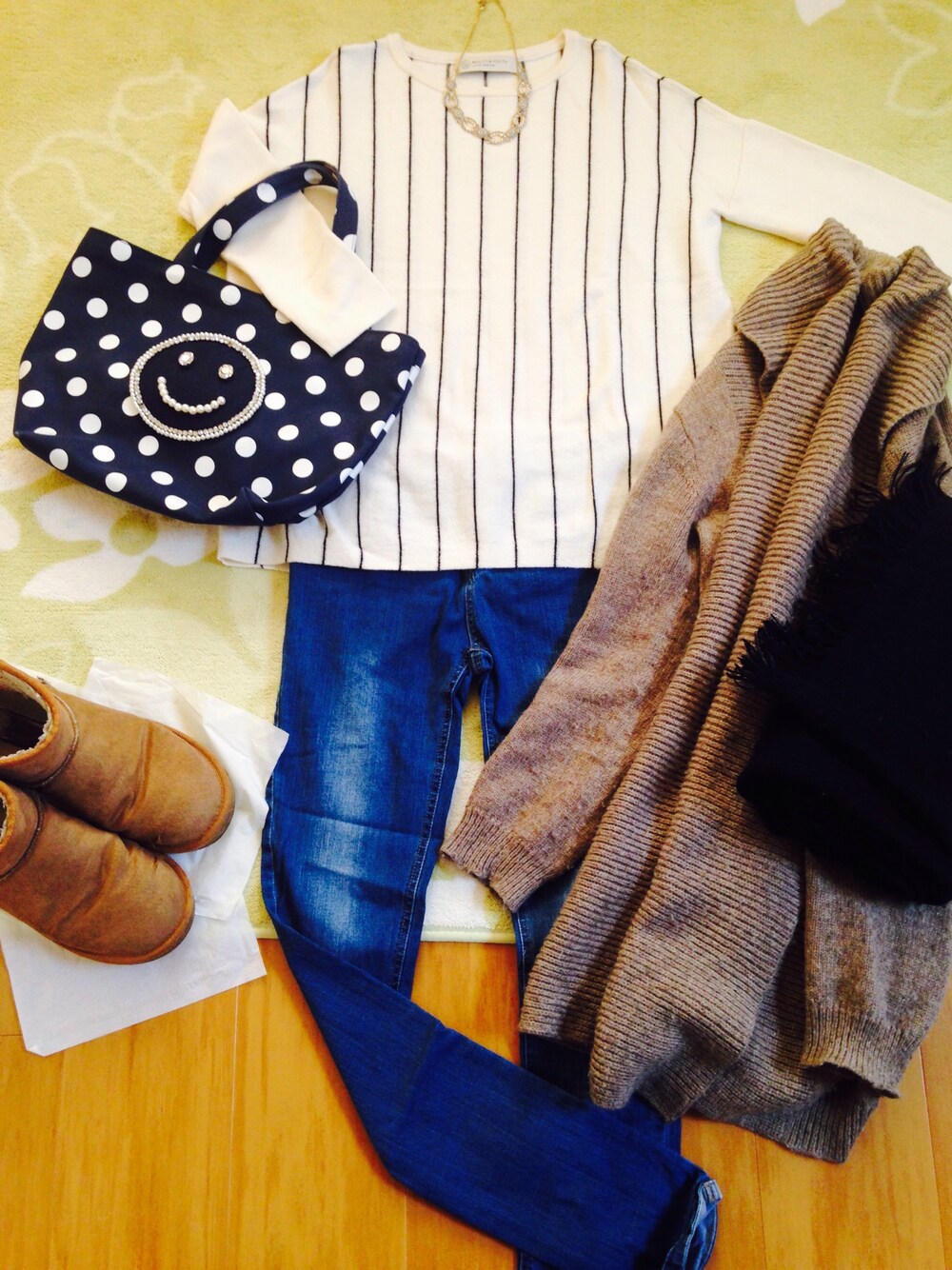 最近は外出していて家に戻ることが無く久々の更新。 今日は夕方から予定が! と言っても一瞬で終わる用事なので、簡単なコーデで。 ちょっとカバンが夏っぽいかな?と思ったけど気にしない(笑) トートバッグはちょっとした外出に便利^_^ カーディガンとストールいらないかな?ってくらい午後から晴れてますね〜 最近雨だったから嬉しい。 2015.11.15
