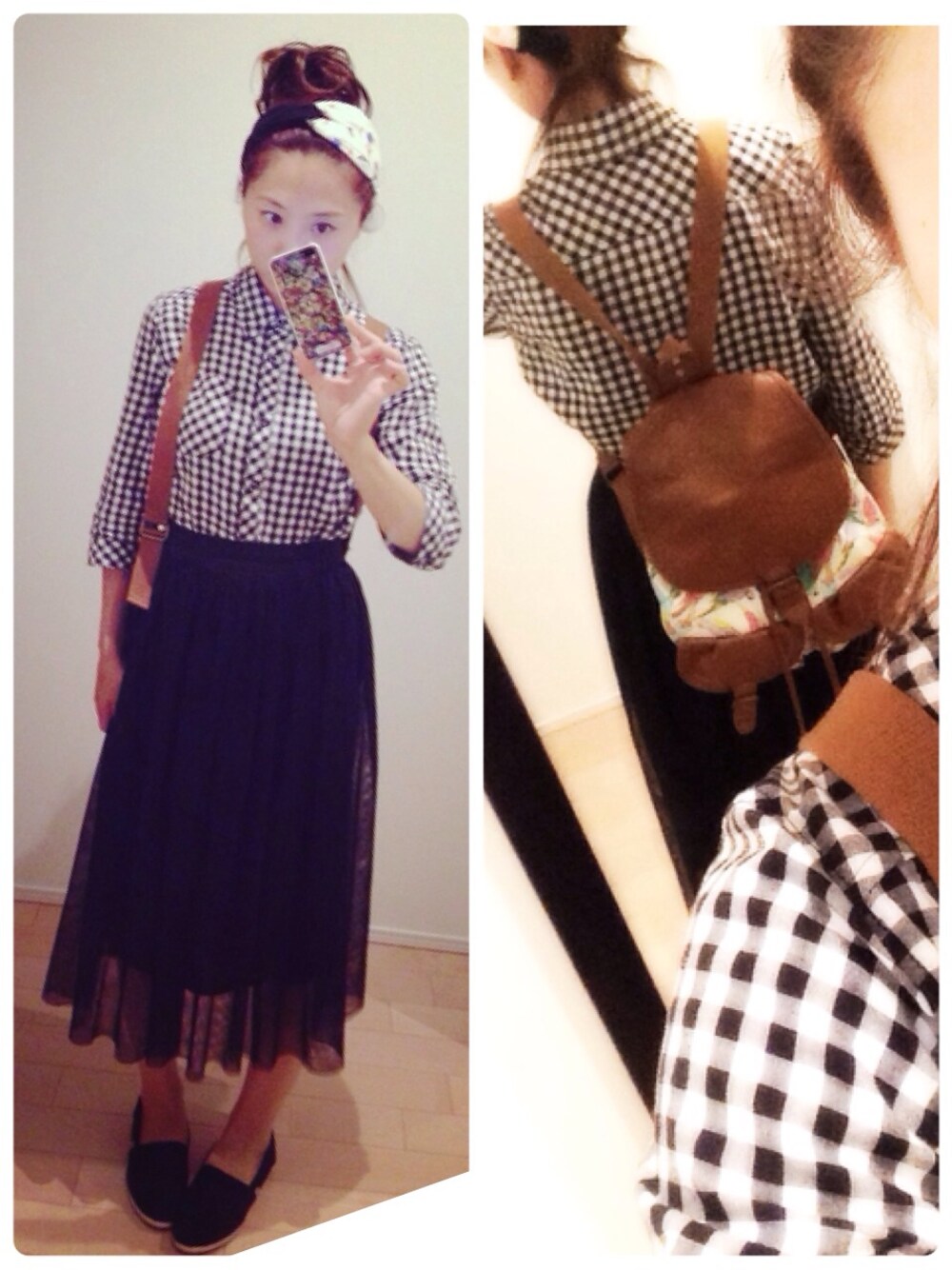 ギンガムチェックシャツ...しまむら チュールスカート...★shuしゅぅろんぽ★ 靴...TOMS リュック...H&M