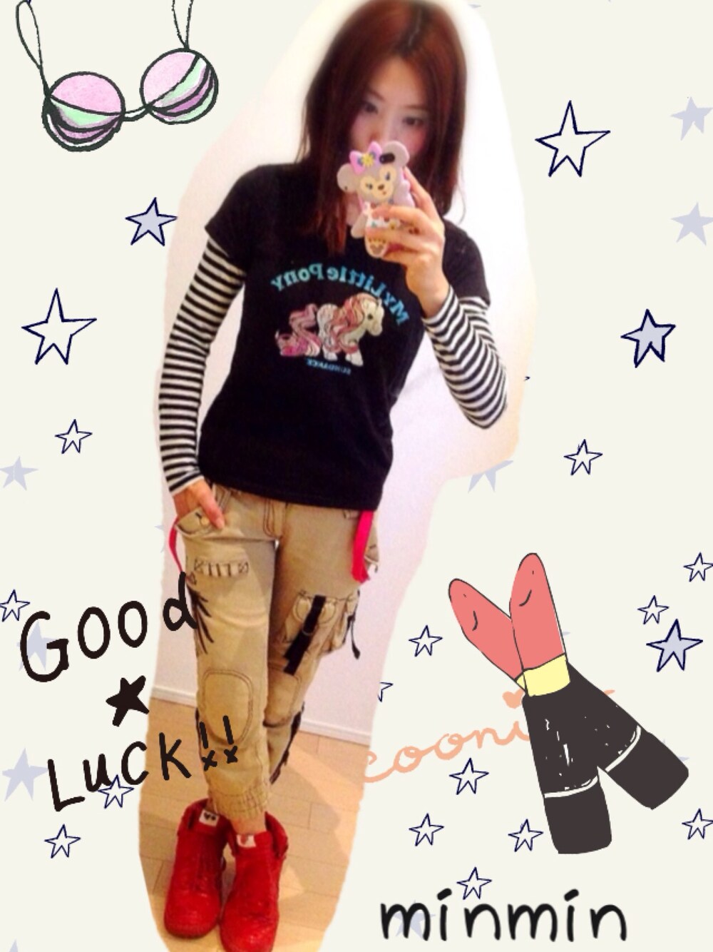 Tシャツ...MyLittlePony ボーダーロンT...ozoc パンツ...Sword fish スニーカー...NIKE サスペンダー...ANAP