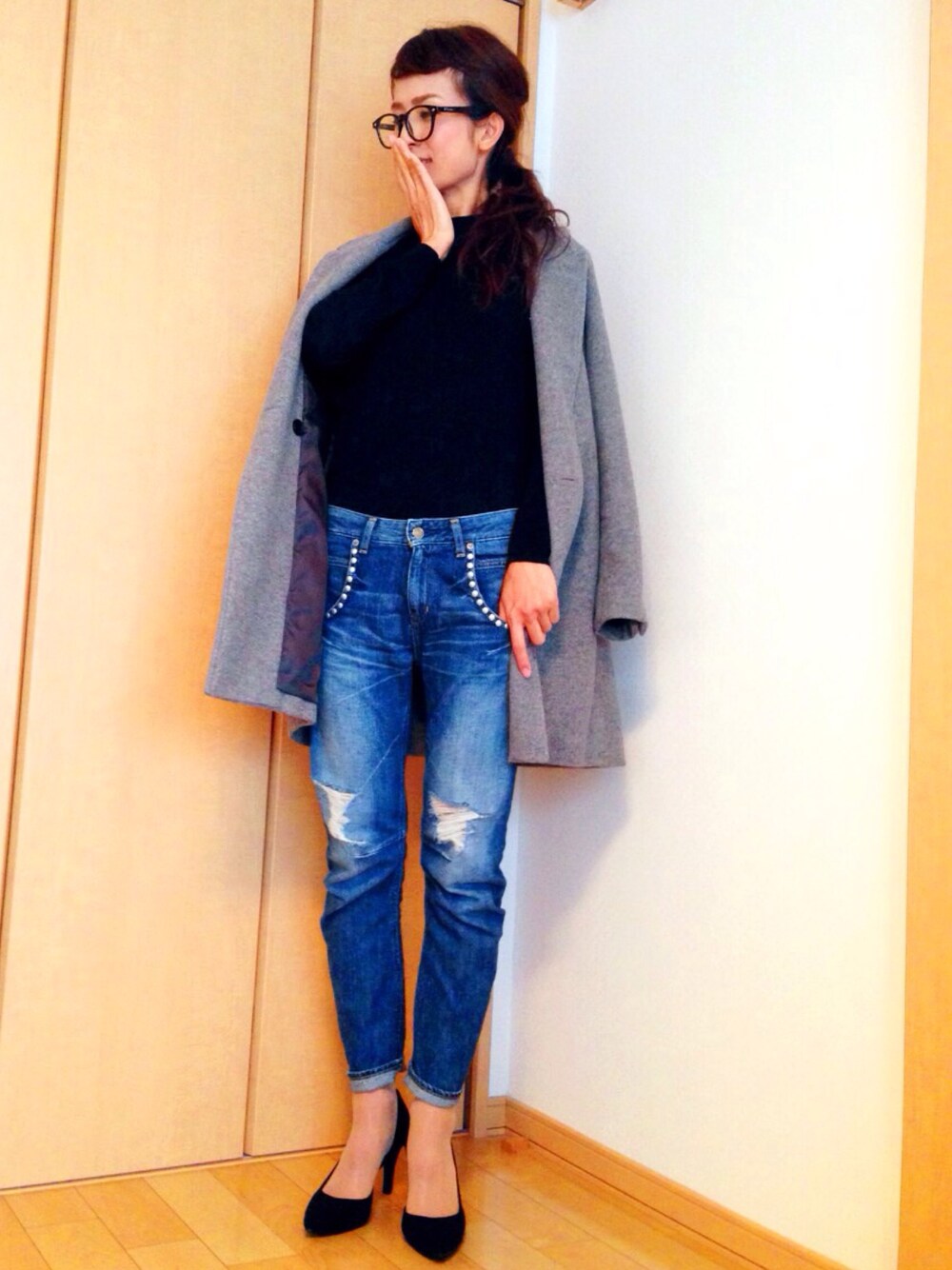 今回もシンプルコーデ☺︎♪ このデニムパンツ 形・色合い・ダメージ感たまらん♪ 履けば履くほど足に馴染むし いい感じになってきましたぁ☺︎♡ しかも… ポケット部分の スタッズがかっこよくて 気に入ってる一本です♡ ちなみに!! このパンプス! ZOZOさんのページに 載っちゃいました!!! ありがとうございます♡ 浮かれてます♡(笑) パンプスの小窓下の 購入をタップしてみてください! そしたら 私が出てきますぉ☺︎☺︎☺︎(笑) 押しても 買うことにはならないです(笑)